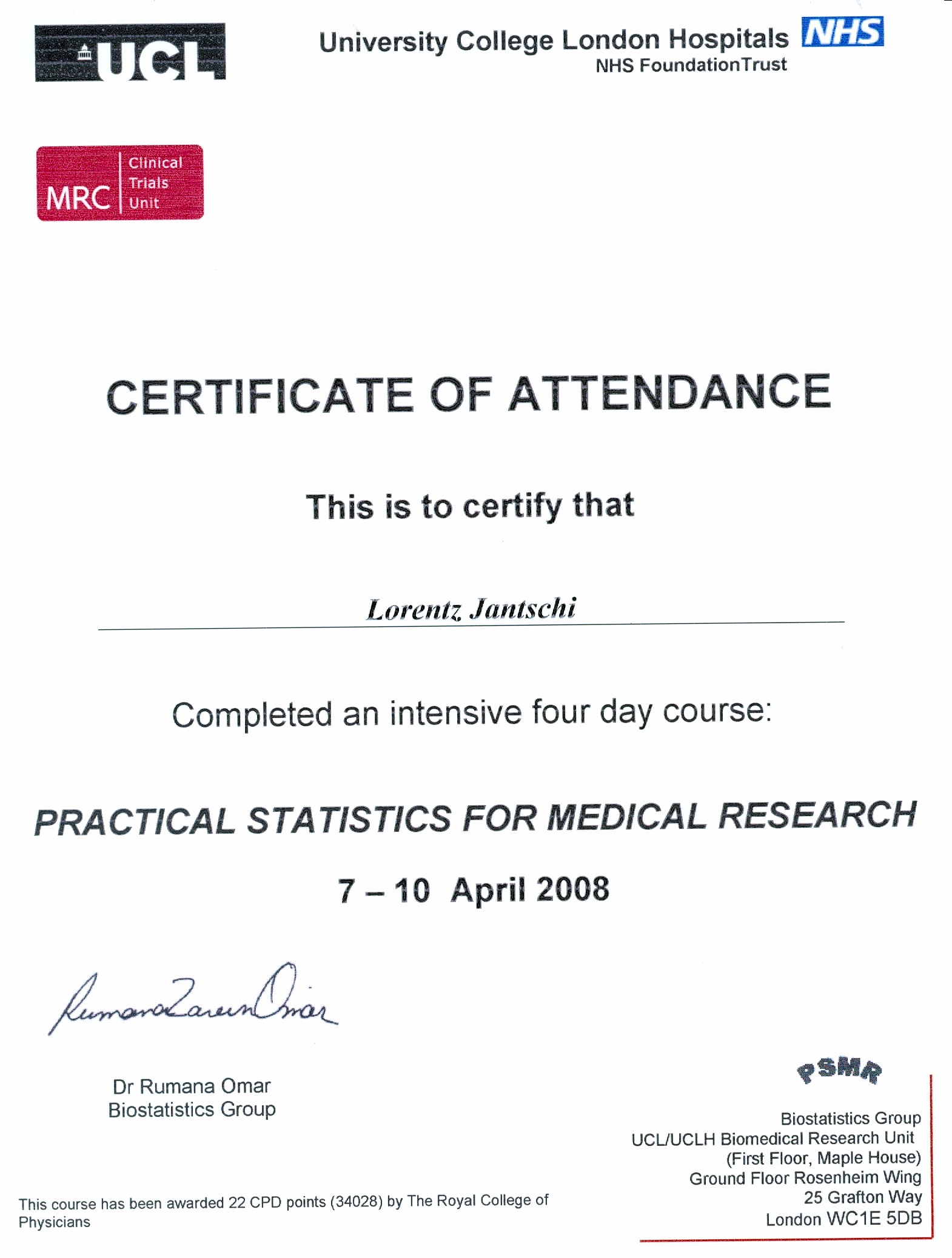 | Observational Studies in Health Research | Rumana OMAR | UCL | B